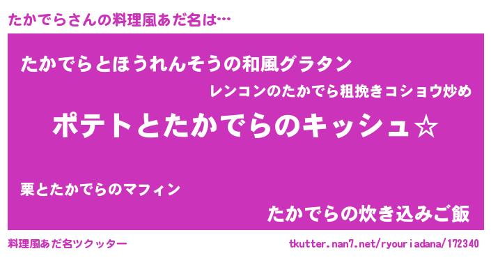 | 女子向けラノベタイトル風あだ名 | 『たかでらの卵を拾いまして』 |