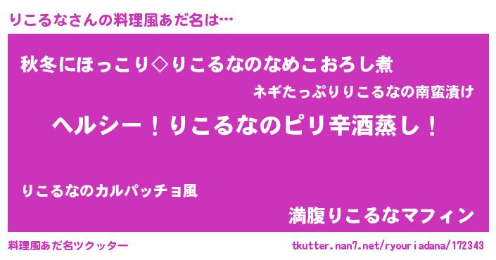 | 意味不明あだ名 | 『自称りこるな』『永久保存りこるな』 |