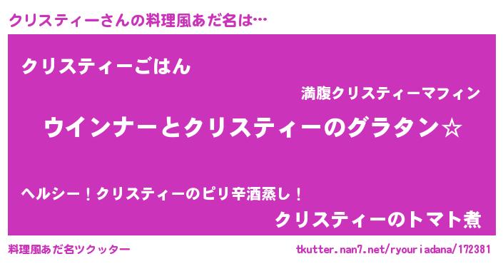 | 欧米人風あだ名 | 『クリスティークリステル』 |