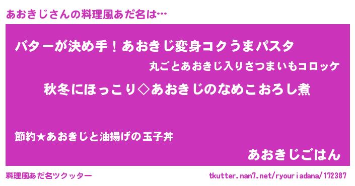 | ヒーロー風カッコイイあだ名 | 『天空の使者あおきじ』『仮面アオダー』 |