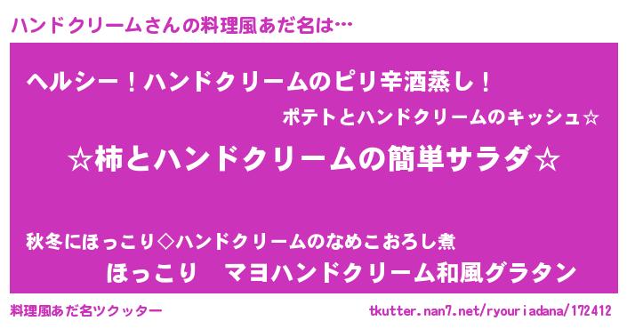 | 胡散臭い通販商品みたいなあだ名 | 『テレビで話題の高麗人参…その名も「ハンドクリーム」』 |