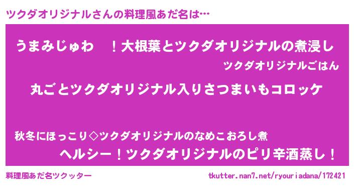 | 男性向けラノベタイトル風あだ名 | 『この素晴らしい世界にツクダオリジナルを!』 |