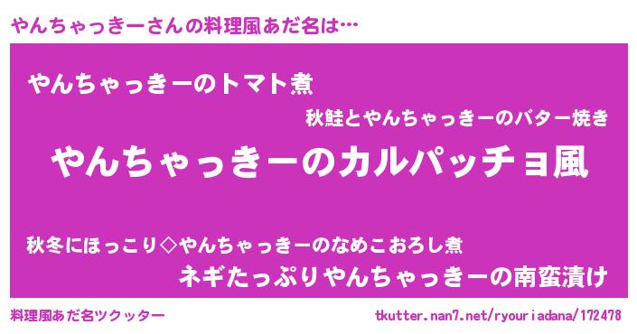 | 意味不明あだ名 | 『住所不定無職やんちゃっきー(95歳)』 |