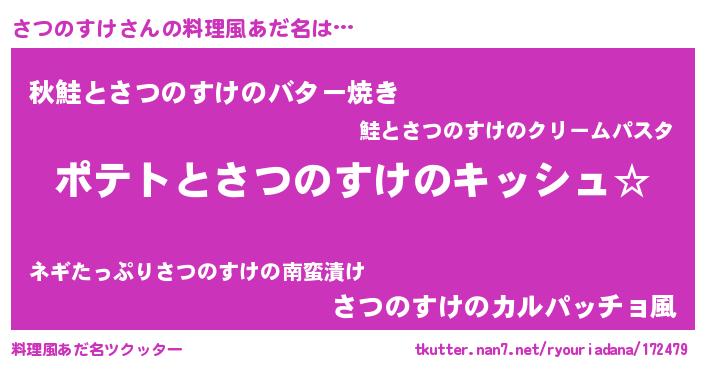 | 女子向けラノベタイトル風あだ名 | 『さつのすけの卵を拾いまして』 |
