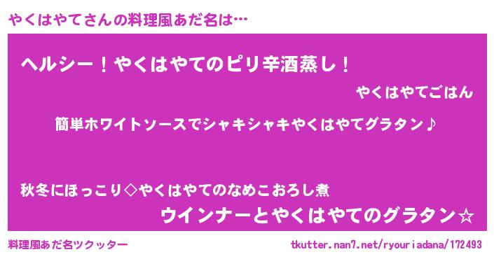 | 胡散臭い通販商品みたいなあだ名 | 『全米が絶賛したサプリメント…その名も「やくはやて」』 |