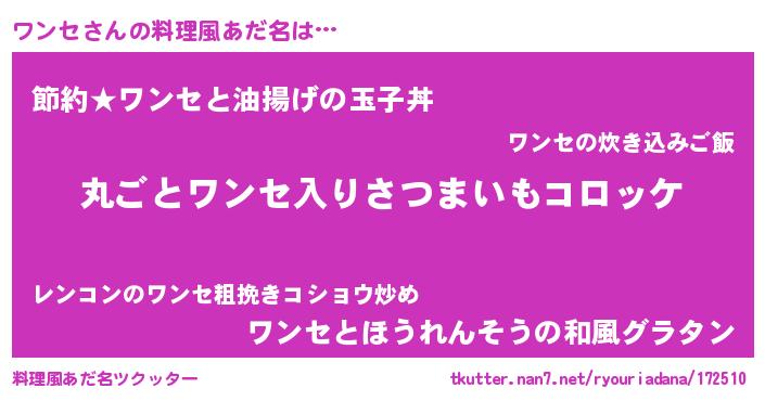 | 意味不明あだ名 | 『住所不定無職ワンセ(7歳)』『自称ワンセ』 |
