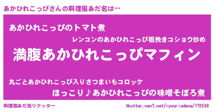 | 女子向けラノベタイトル風あだ名 | 『異世界で失敗しない100のあかひれこっぴ』 |