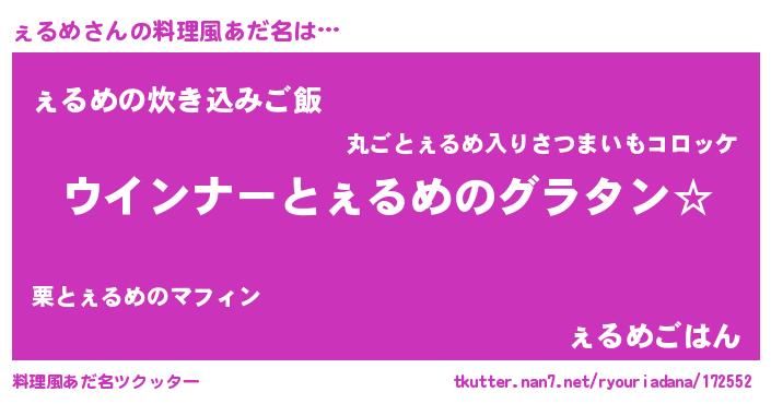 | 意味不明あだ名 | 『ぇるめフォーエバー』『ペロリンぇるめ』 |