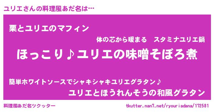 | ポケモン風あだ名 | 『ユリチュウ』『ユリゴンZ』 |