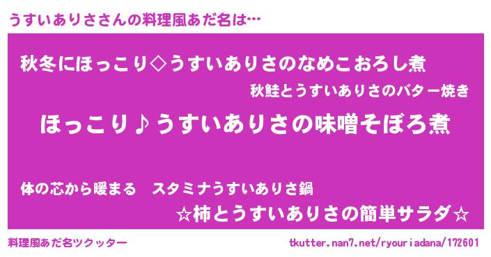 | ヘコむあだ名 | 『うすもー』『うすいありさ(笑)』 |