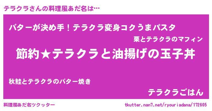 | ヘコむあだ名 | 『テラにゅー』『テラクラ(遠い目)』 |
