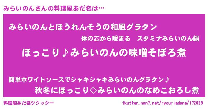 | ポケモン風あだ名 | 『ミラチュウ』『ミラキング』 |