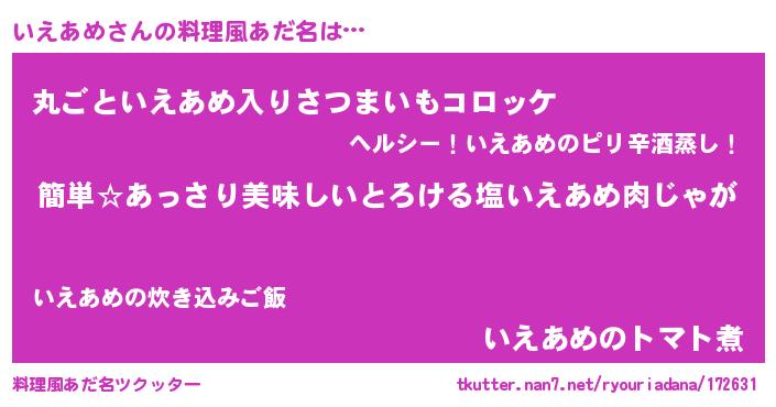 | ヘコむあだ名 | 『いえあめ(笑)』『いえを』 |