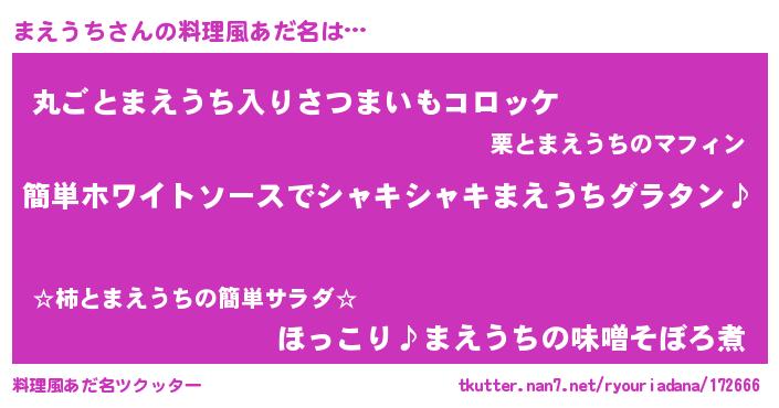 | 恥ずかしいあだ名 | 『マエリンリン』『プリティーまえうち』 |