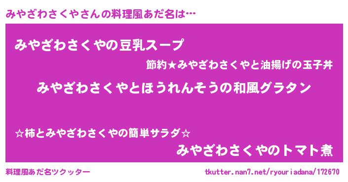 | ポケモン風あだ名 | 『ミヤキング』『ヒミヤザワサクヤ』 |