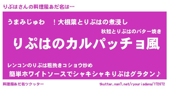 | ヒーロー風カッコイイあだ名 | 『仮面リプダー』『ウルトラりぷはマン』 |