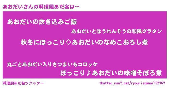 あおだいさんの料理風あだ名をツクッター!