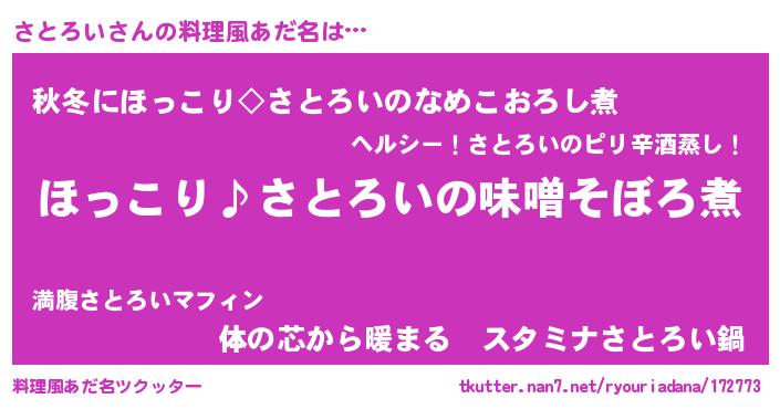 | 胡散臭い通販商品みたいなあだ名 | 『必ず成功するブレスレット…その名も「さとろい」』 |