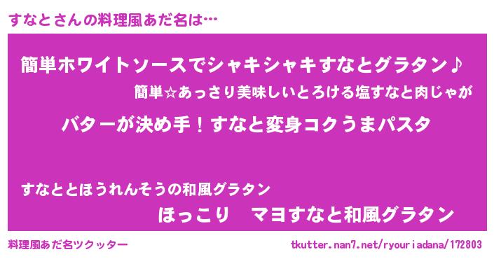| 可愛いあだ名 | 『すなちゅっちゅ』『すっなぃー』 |