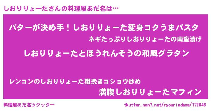 | ヘコむあだ名 | 『しおりりょーた(遠い目)』『しおっふぃ~』 |