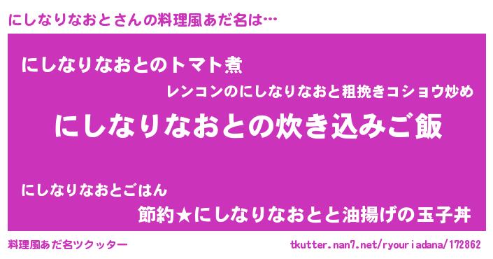 | ヘコむあだ名 | 『にしにー』『にしなりなおと(震え声)』 |