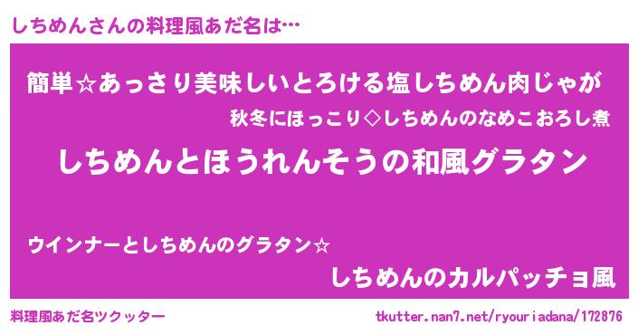 | 胡散臭い通販商品みたいなあだ名 | 『前代未聞の健康食品…その名も「しちめん」』 |
