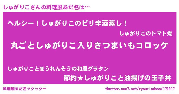 | 意味不明あだ名 | 『住所不定無職しゅがりこ(12歳)』 |