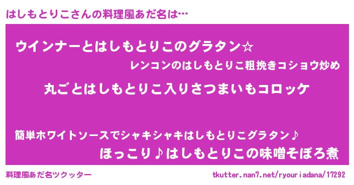 | 意味不明あだ名 | 『住所不定無職はしもとりこ(89歳)』 |
