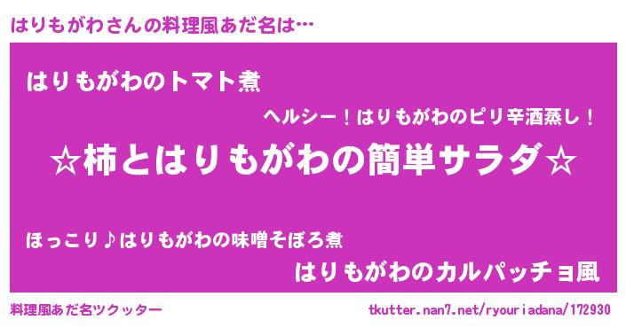 | 男性向けラノベタイトル風あだ名 | 『緋弾のハリモガワ』『はりもがわの憂鬱』 |