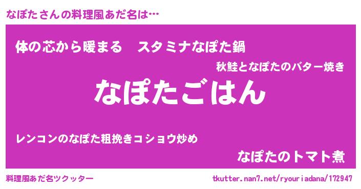 | ヒーロー風カッコイイあだ名 | 『ウルトラなぽたマン』『ネオナポタ』 |