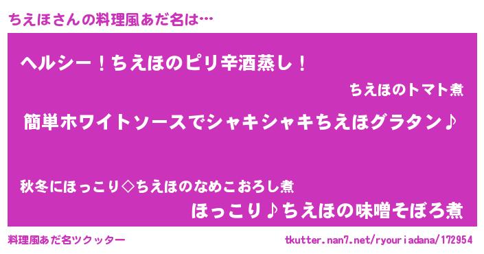 | 男性向けラノベタイトル風あだ名 | 『ちえほの嫁は女の子じゃないと思った?』 |