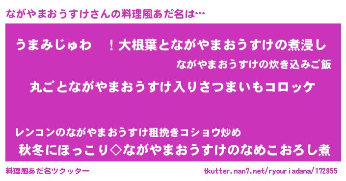 | ヘコむあだ名 | 『なまこ酢』『ながやまおうすけ(笑)』 |