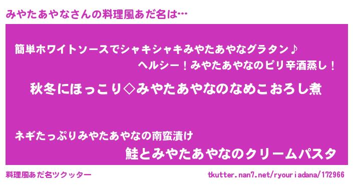 | 胡散臭い通販商品みたいなあだ名 | 『全米が絶賛したサプリメント…その名も「みやたあやな」』 |