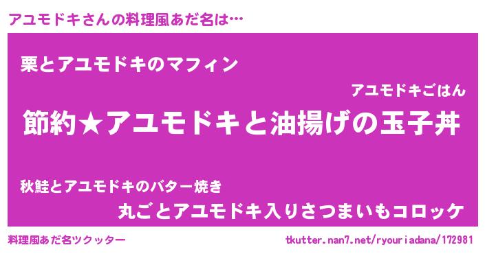 | ヒーロー風カッコイイあだ名 | 『スーパーアユモドキ』『仮面アユダー』 |