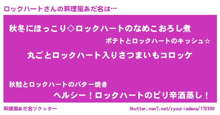 | ヒーロー風カッコイイあだ名 | 『仮面ロッダー』『究極戦士ロックハート』 |