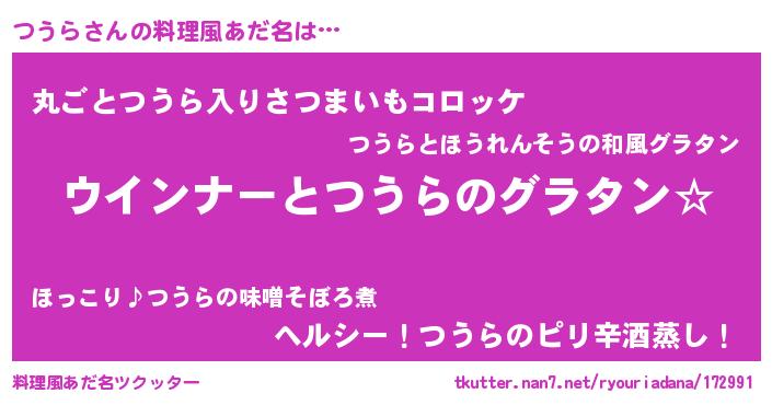 | ヒーロー風カッコイイあだ名 | 『ウルトラつうらマン』『仮面ツウダー』 |