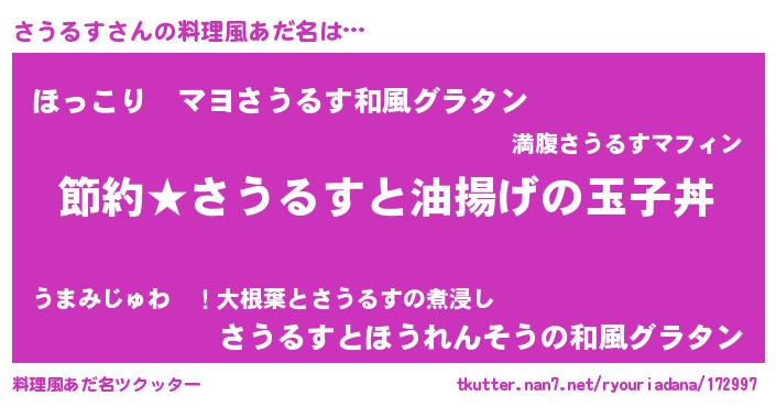 | 意味不明あだ名 | 『ペロリンさうるす』『永久保存さうるす』 |