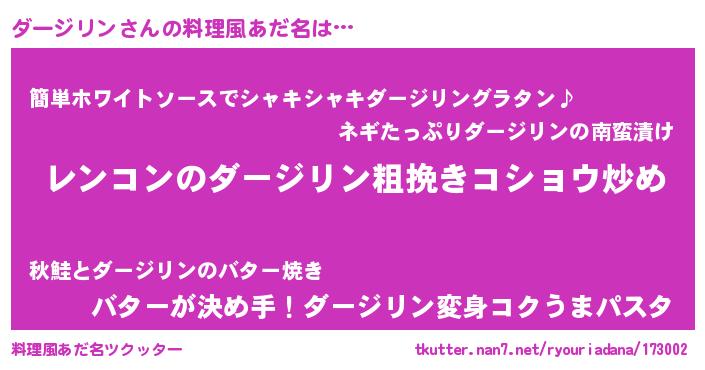 | 女子向けラノベタイトル風あだ名 | 『ダージリンアンティーク』 |