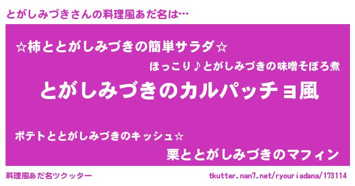| 意味不明あだ名 | 『住所不定無職とがしみづき(7歳)』 |