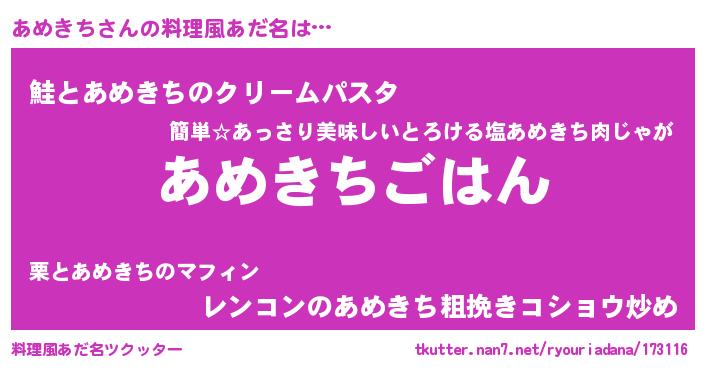 | 男性向けラノベタイトル風あだ名 | 『アメキチスレイヤー』 |