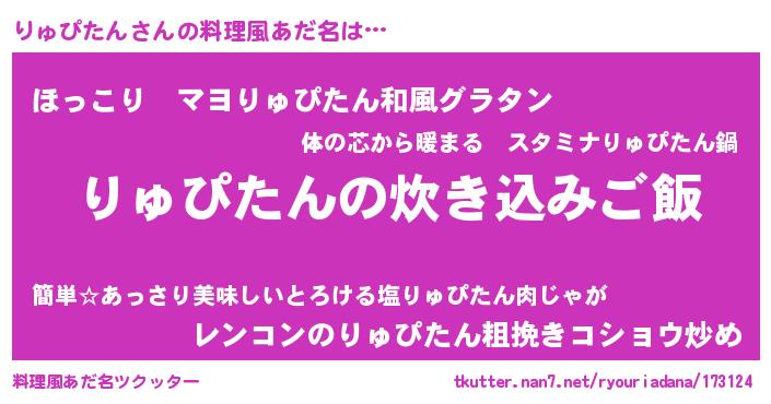 | 意味不明あだ名 | 『住所不定無職りゅぴたん(12歳)』 |