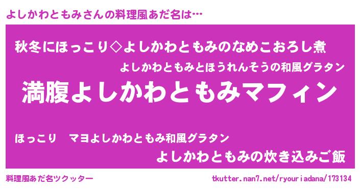 | 意味不明あだ名 | 『永久保存よしかわともみ』 |