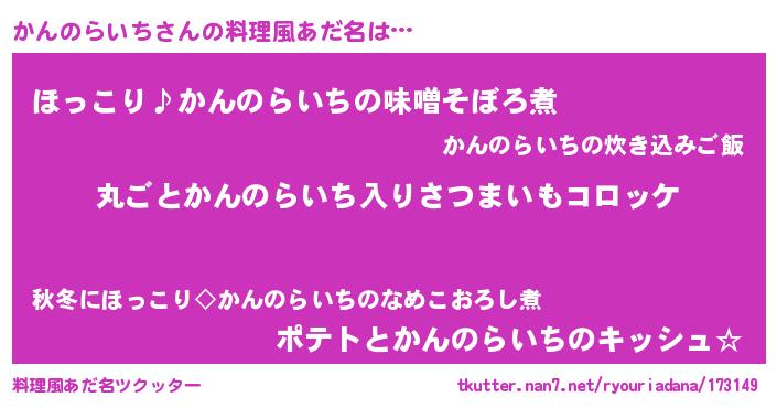 | ヒーロー風カッコイイあだ名 | 『仮面カンダー』『スーパーカンノライチ』 |