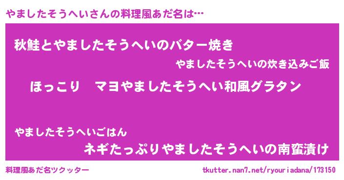 | 意味不明あだ名 | 『住所不定無職やましたそうへい(2歳)』 |