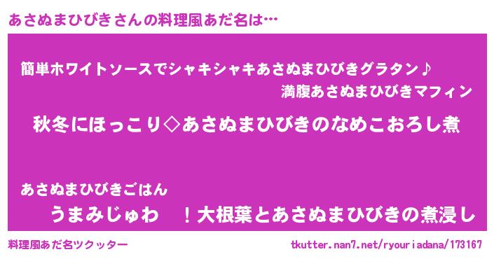 | ヘコむあだ名 | 『あさっ子』『牛乳』『あさっふぃ~』 |