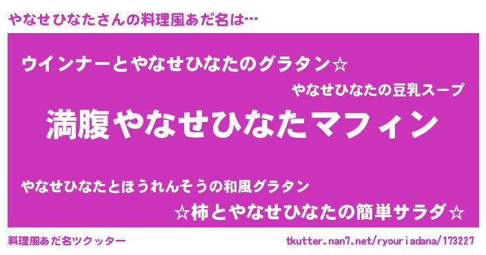| 女子向けラノベタイトル風あだ名 | 『異世界で失敗しない100のやなせひなた』 |
