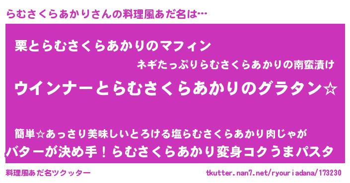 | 意味不明あだ名 | 『らむさくらあかりフォーエバー』 |