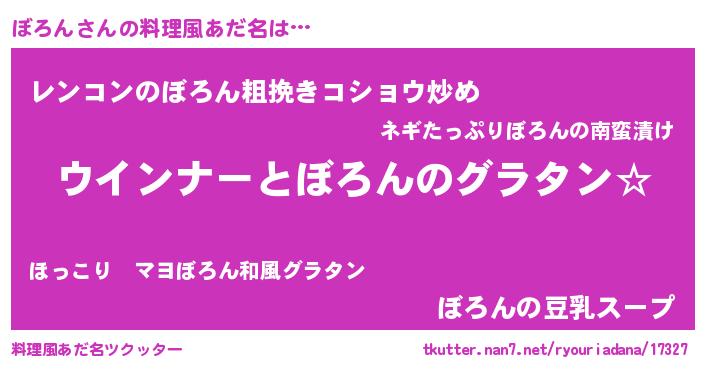 | 意味不明あだ名 | 『ぼろんフォーエバー』『自称ぼろん』 |