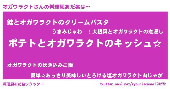 | 男性向けラノベタイトル風あだ名 | 『オガワラクトの嫁は女の子じゃないと思った?』 |