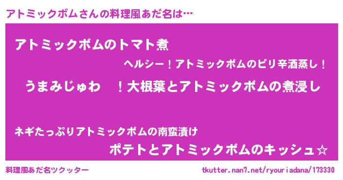 | 意味不明あだ名 | 『アトミックボムフォーエバー』 |